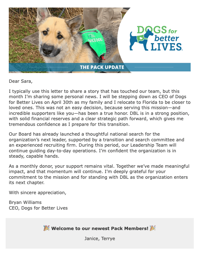 • Attending an obedience training classes or hire a private obedience trainer as prescribed by your Dogs for Better Lives professional trainer