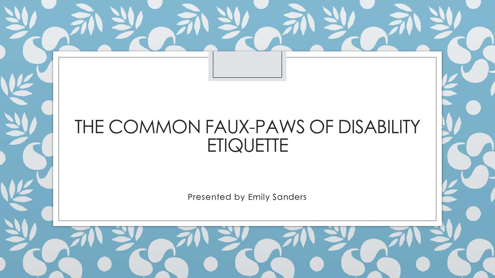 - 04 The Common Faux-Paws of Disability Etiquette