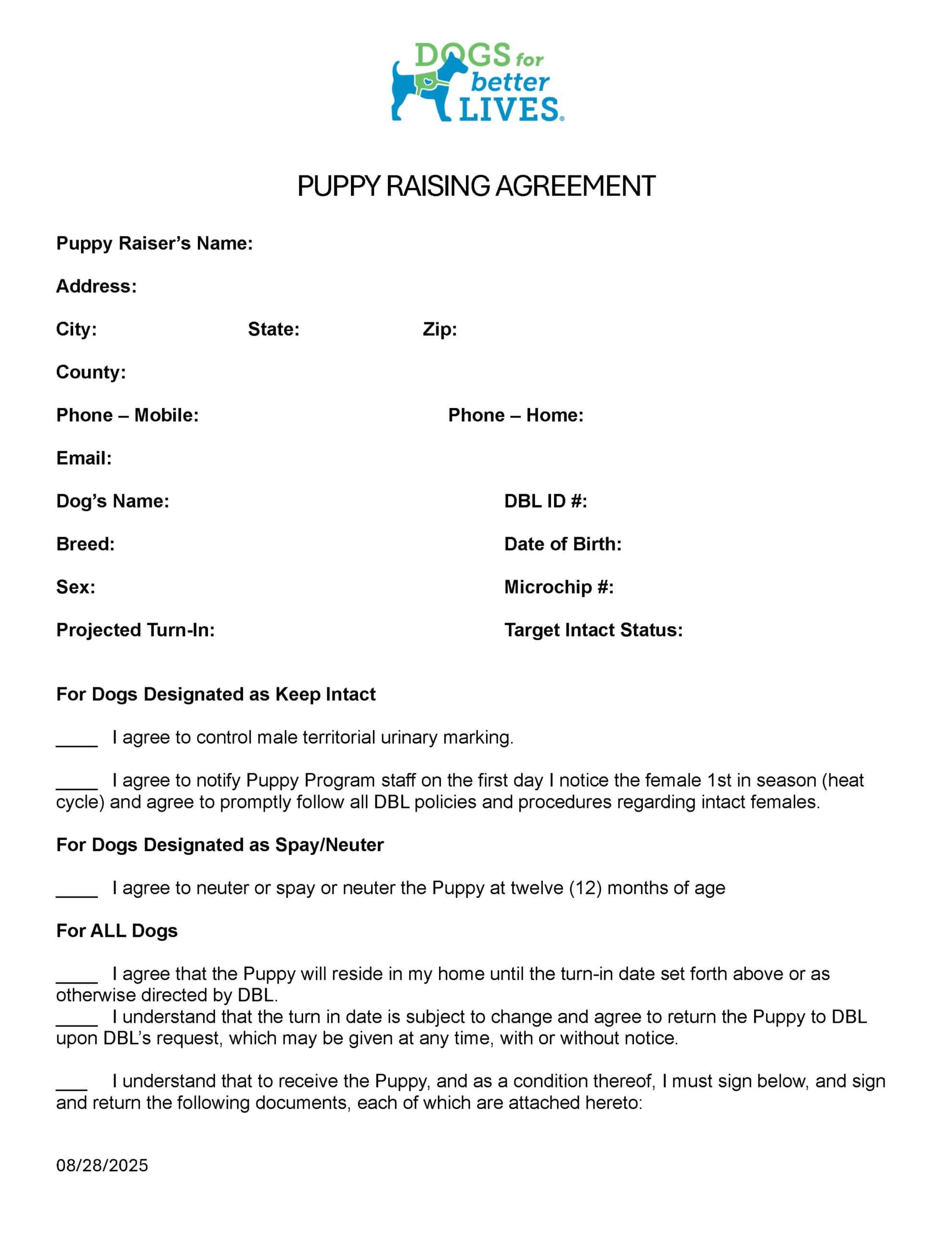 - Puppy Raiser Agreement